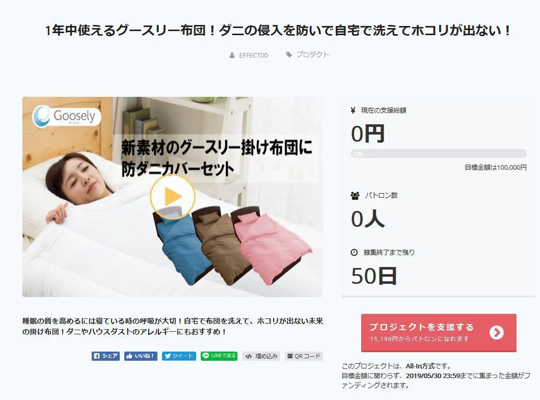 グースリー掛け布団防ダニセットのプロジェクトが始まりました!
