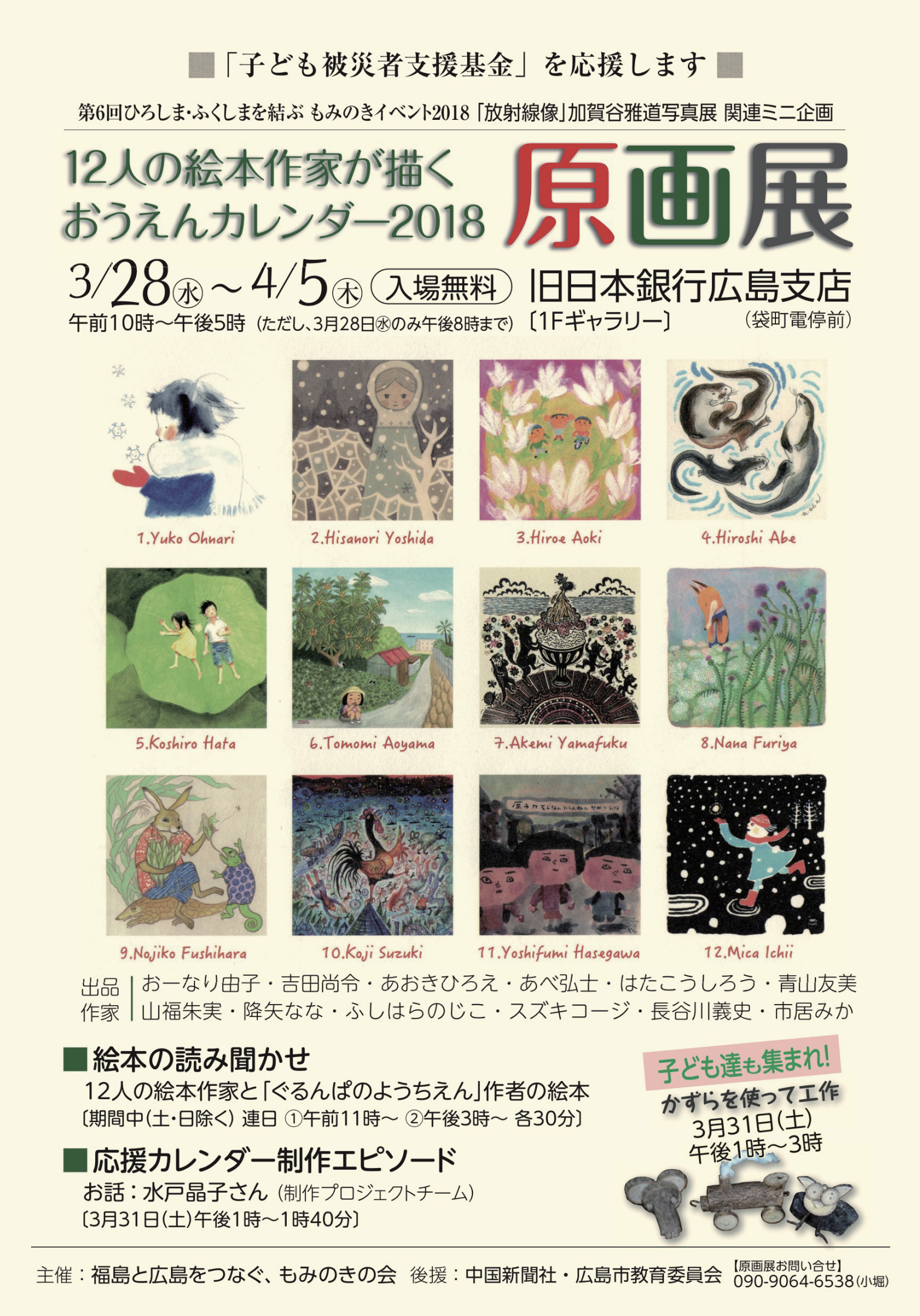 〈2018年「見えないものを、見る。「放射線像」加賀谷雅道 写真展 & トーク」「「12人の絵本作家が描くおうえんカレンダー2018」原画展」〉