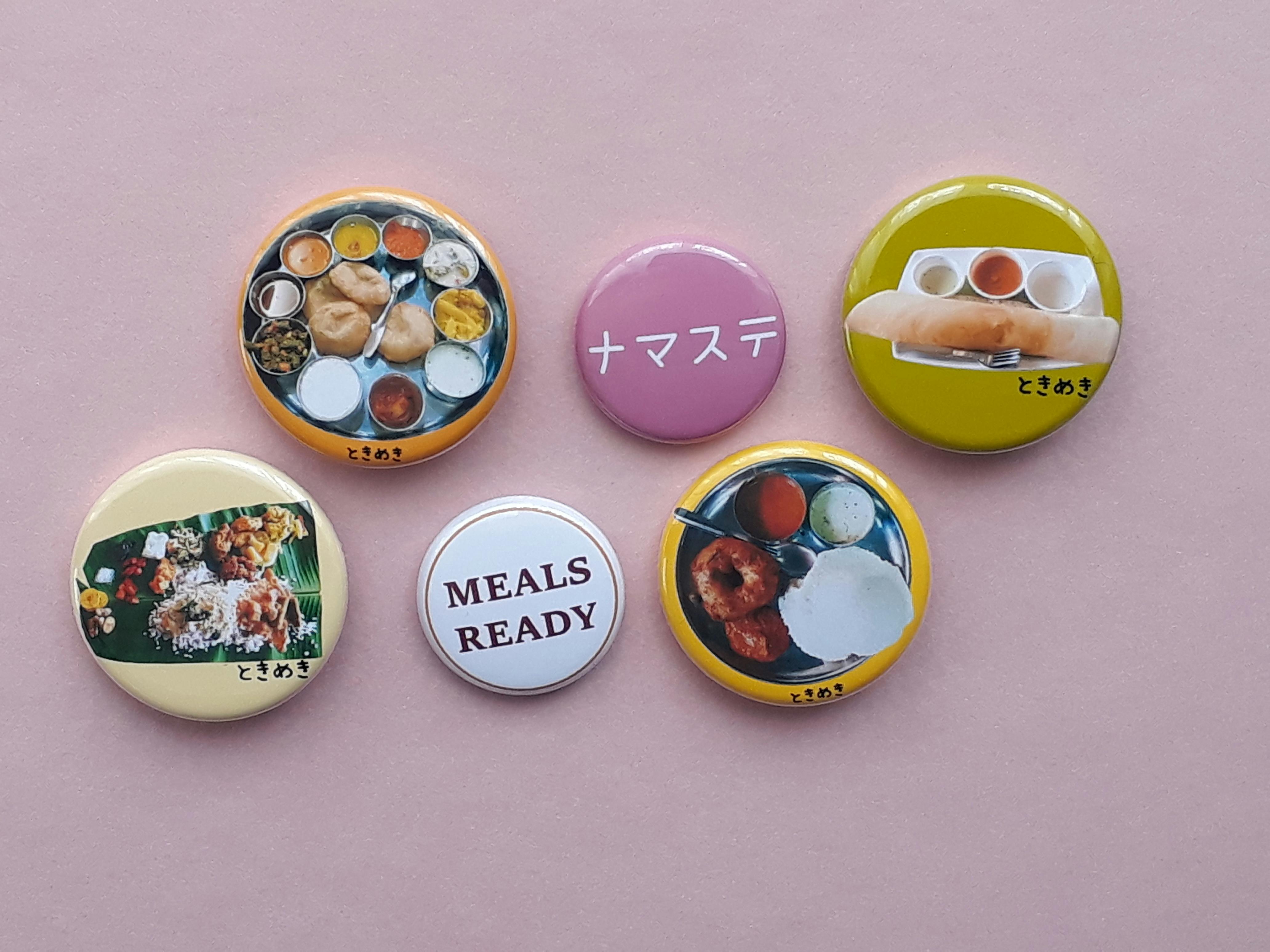 私たちのカレー愛の詰まったオリジナル缶バッヂ、種類は全6種です。