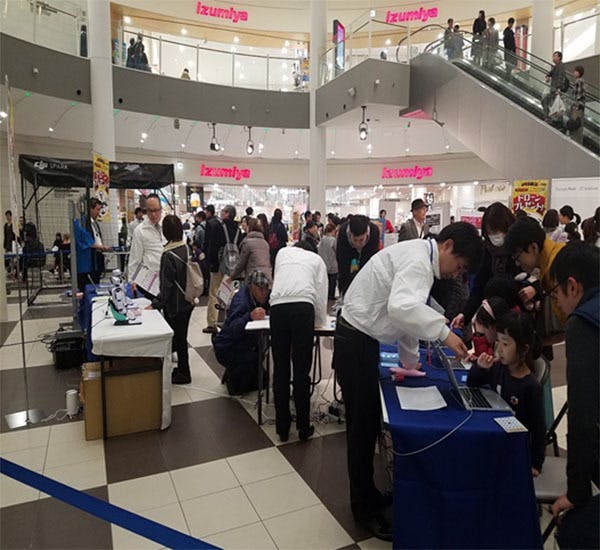 二日間で約1000名ほどのお客様にご来場していただき、ドローンやプログラミング方法などを体験していただきました。
