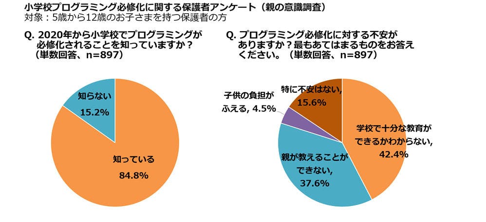 プログラミング学習の必修化に関しては不安に思われている親御さんが多く、学校での教育が十分にできるかわからないことや、親御さんが教えることができないなどの不安が大半でした。