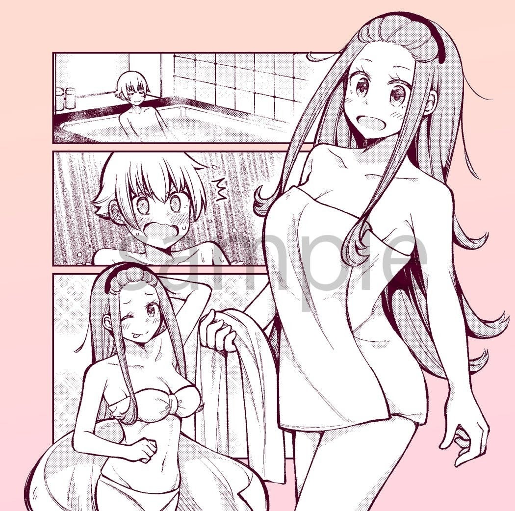 こちらはリーフレットに収録します原作10~11話・ドラマCD第1話のお風呂回のリメイクイラスト です。リーフレットには他話数のイラストをはじめ、ドラマCD収録話に対するヨウハ先生のコメントや、描き下ろしスリーブジャケットの各キャラ単体イラスト を掲載予定です。
