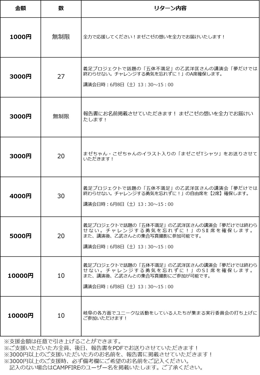 本プロジェクトはAll-in方式で実施します。目標金額に満たない場合も、計画を実行し、リターンをお届けします。