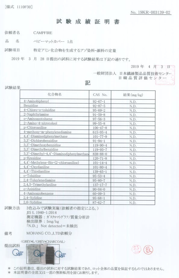 ベビーステラは赤ちゃんに安全な製品づくりのため、最善の努力を惜しみません。カバーの素材は、日本繊維製品品質技術センター (QTEC) の有害物質試験を通過しています。