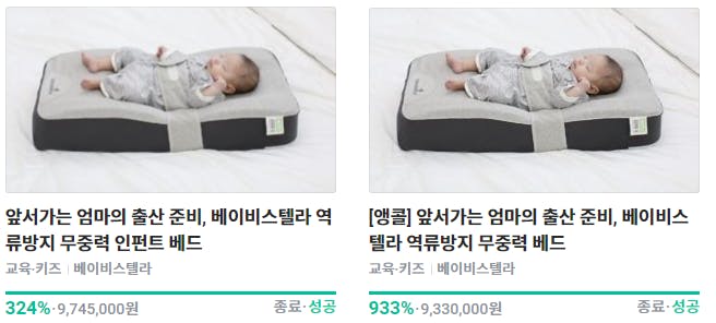 ベビーステラ無重力逆流防止新生児用ベッドは、韓国を代表するクラウドファンディングサイトであるWadizにおいて資金調達を成功裏に終えることができました。韓国での成功に続く進出先として、CAMPFIREでのプロジェクトを準備しています。