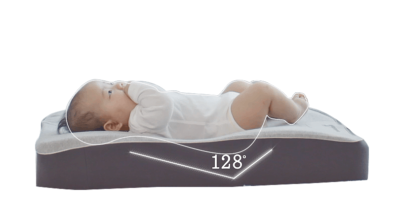 体圧を均等に分散させる芸術的な角度設計で、現在市販されている他のベビーベッドに比べ、楽で自然な状態を保ちます。体圧をうまく分散できなければ、体重が体の一部分に集中し、負担がかかってしまいます。