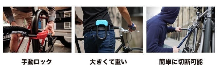 従来のバイクロックは、安全で強靭にする為により大きくて重い設計になっています。