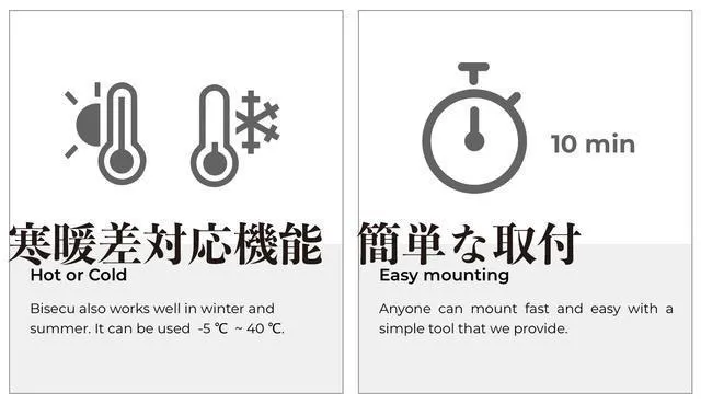 bisecu(バイセキュ)は、冬の寒い時も、夏の暑い時にも正常に動作します。使用環境は-5℃〜40℃です。