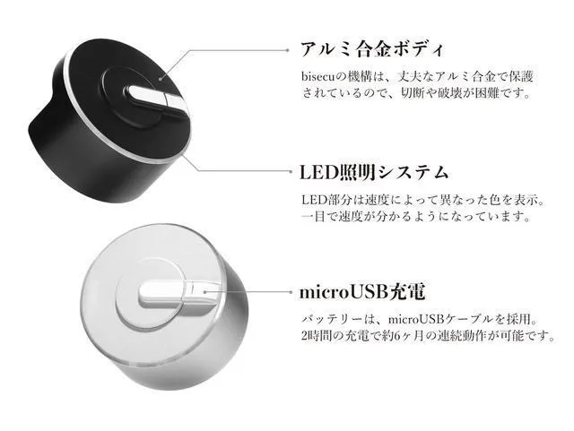 bisecu(バイセキュ)は、microUSBケーブルで充電することができます。