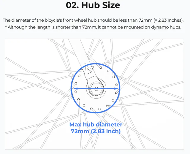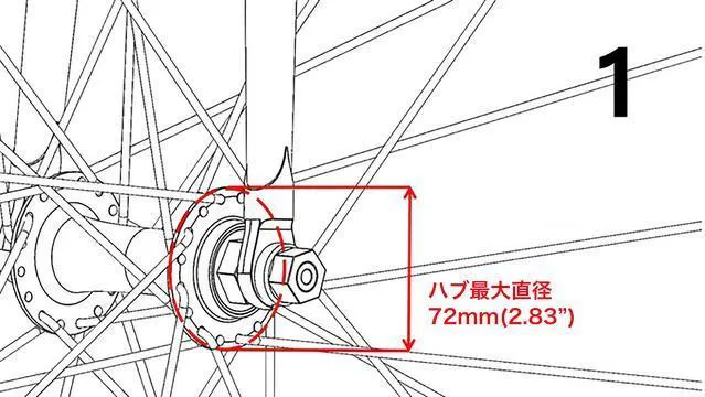 自転車の前輪のハブの直径は、72mm以下でなければなりません。