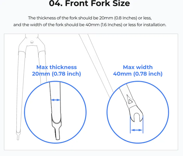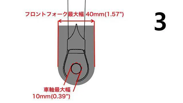 フォークの厚さは20mm以下、幅は40mm以下の自転車に装着できます。