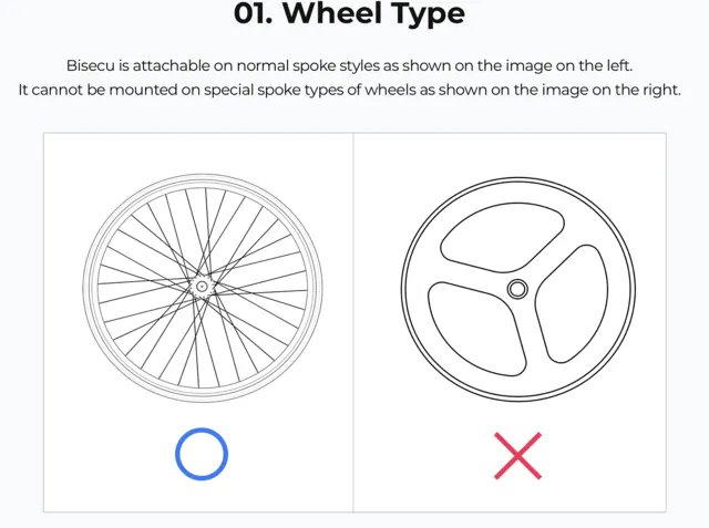 左の図の様に、bisecuは通常のスポークスタイルに取り付けることができます。