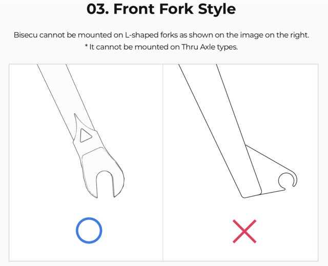 右側の図の様に、bisecuをL字型フォークに取り付けることはできません。
