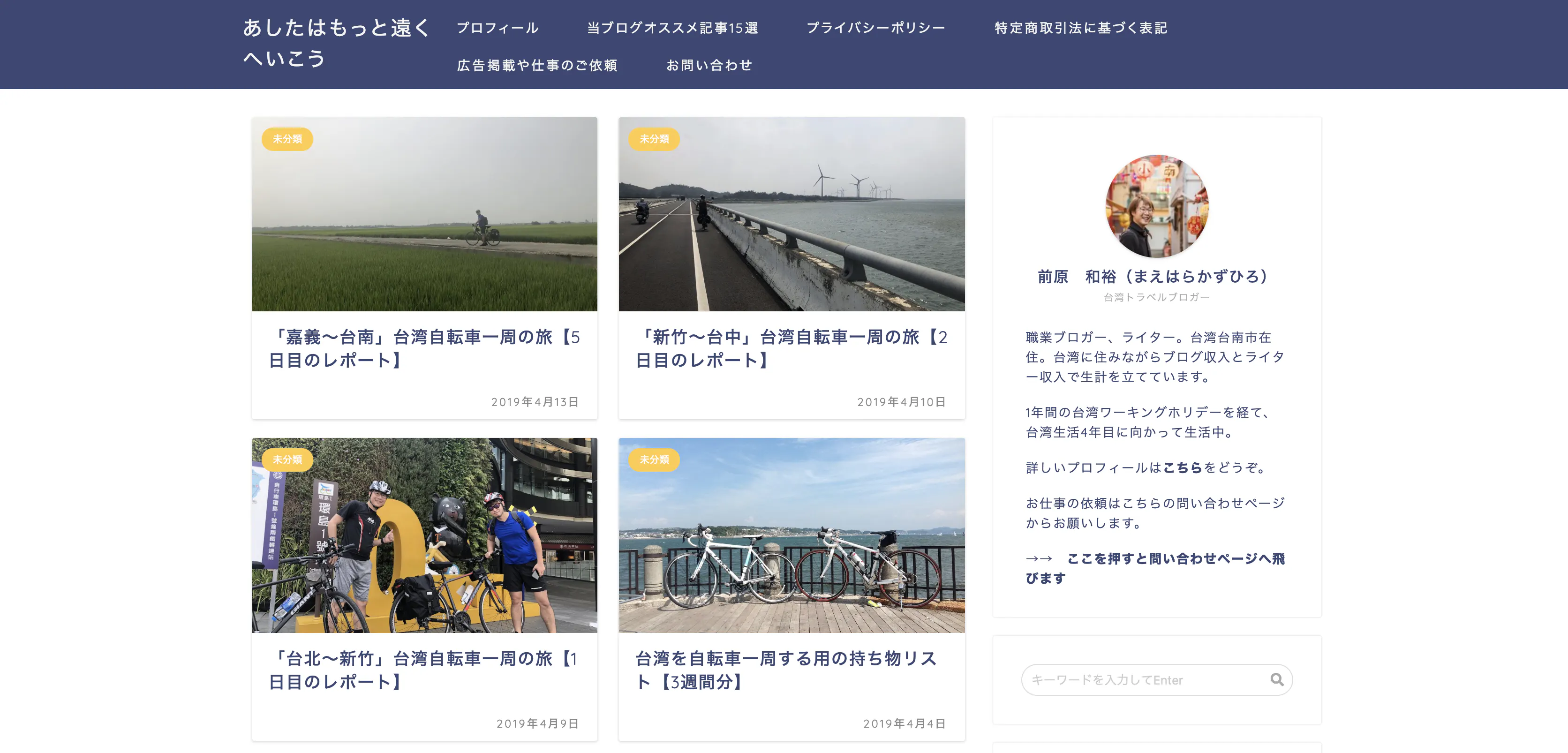 まえちゃんこと前原和裕は、台湾旅行や観光を中心に紹介する個人Webメディア「あしたはもっと遠くへいこう」を運営してきました。