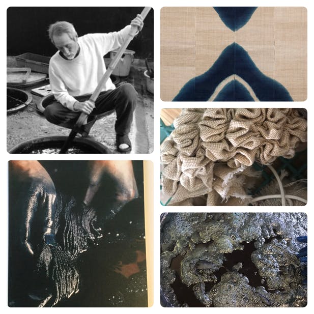 今まで見てきた藍染めの色とは全く違う、薬品無添加本藍の深く美しい色と先生独自の世界観が広がる作品に圧倒されました。