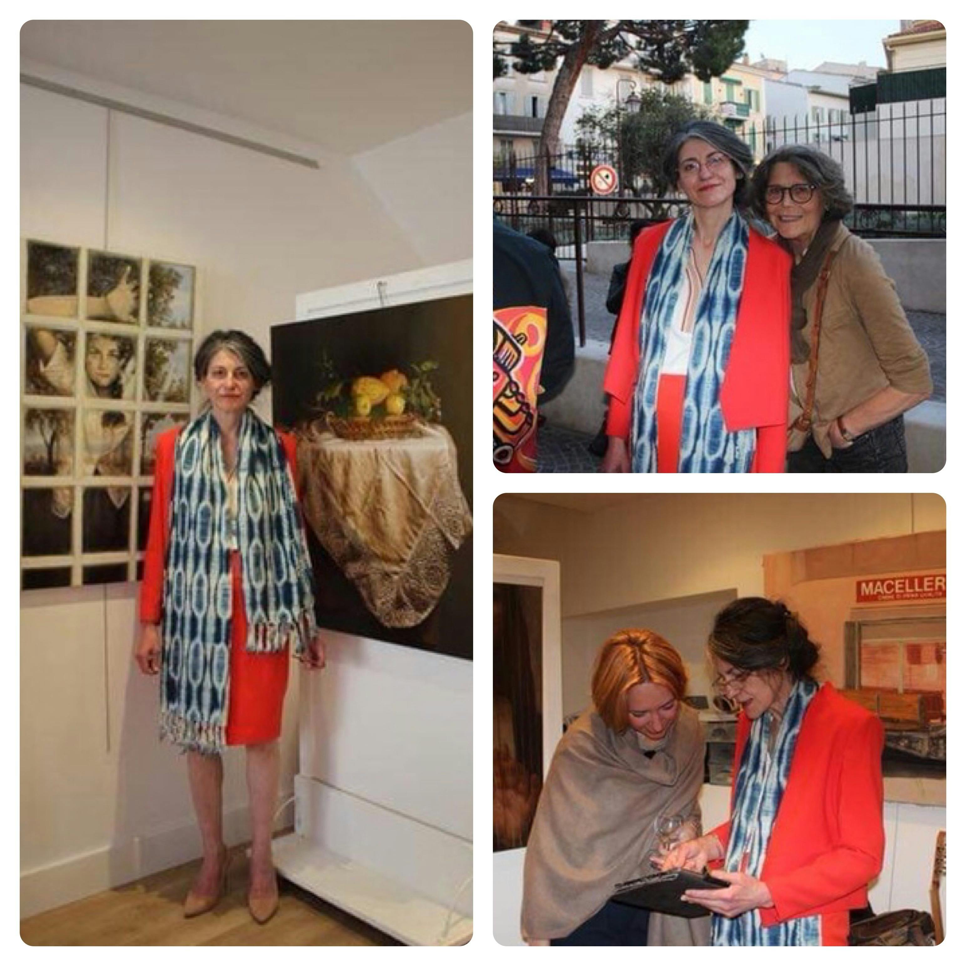 マリアから、写真が送られて来ました。彼女がしているストールは、田中先生の作品です。今回の個展の為に、先生の作品が分かるようにと作品集を送った時に、一緒に贈らせて頂きました。
