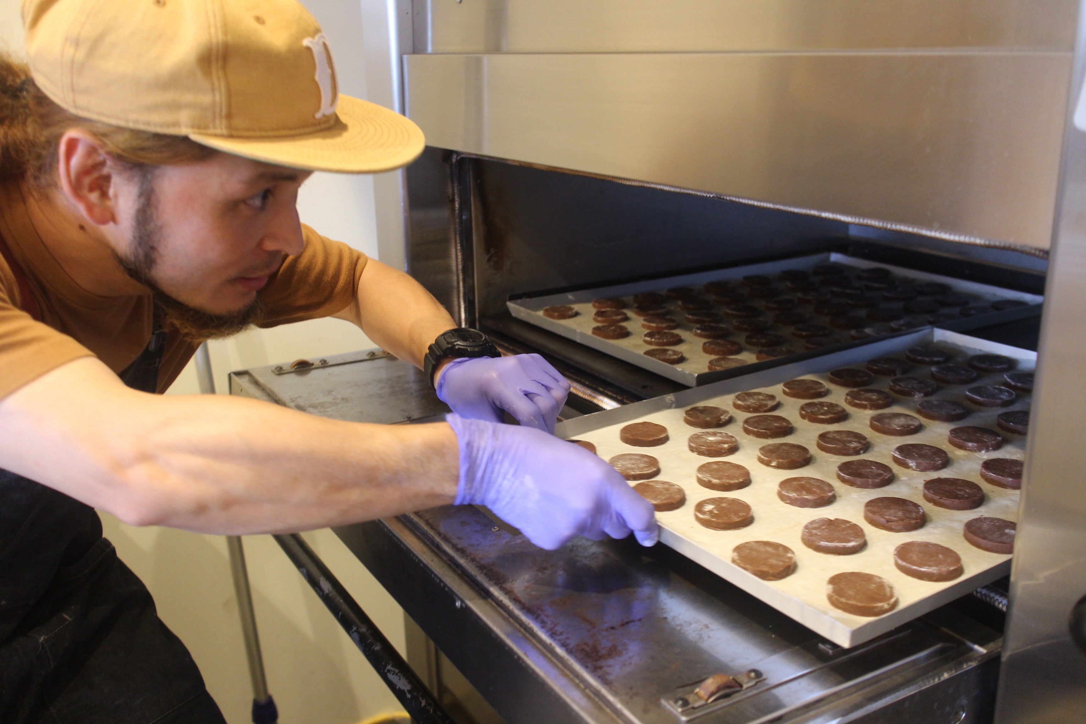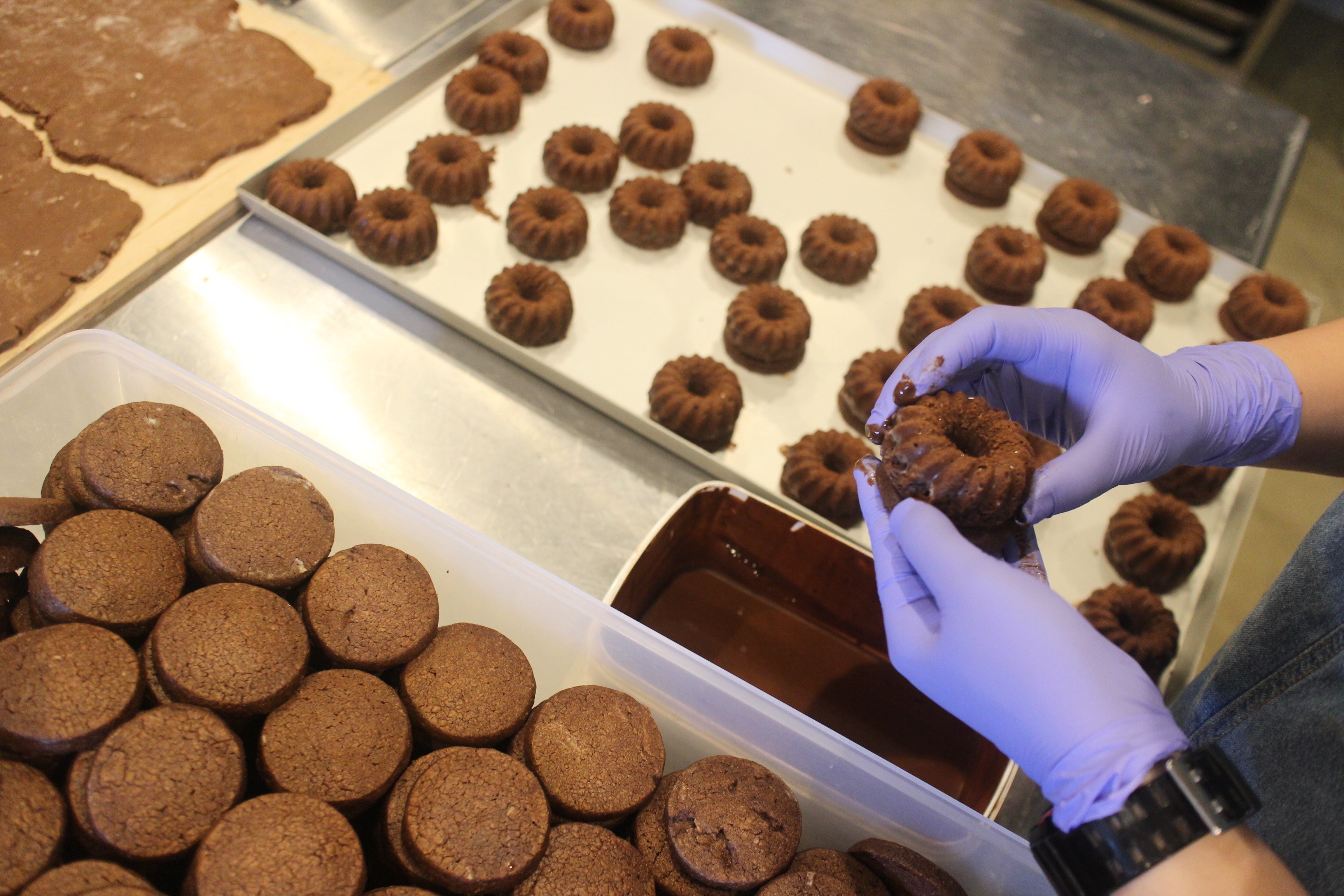 先述したようにガトーショコラは食感が命であり、最もデリケートであることから、この冷凍ストッカーを使い、半加工食材(ガトーショコラ)をしっかりと保冷しながらストックし、ネットショップによる販売需要に対応する必要があるのです。