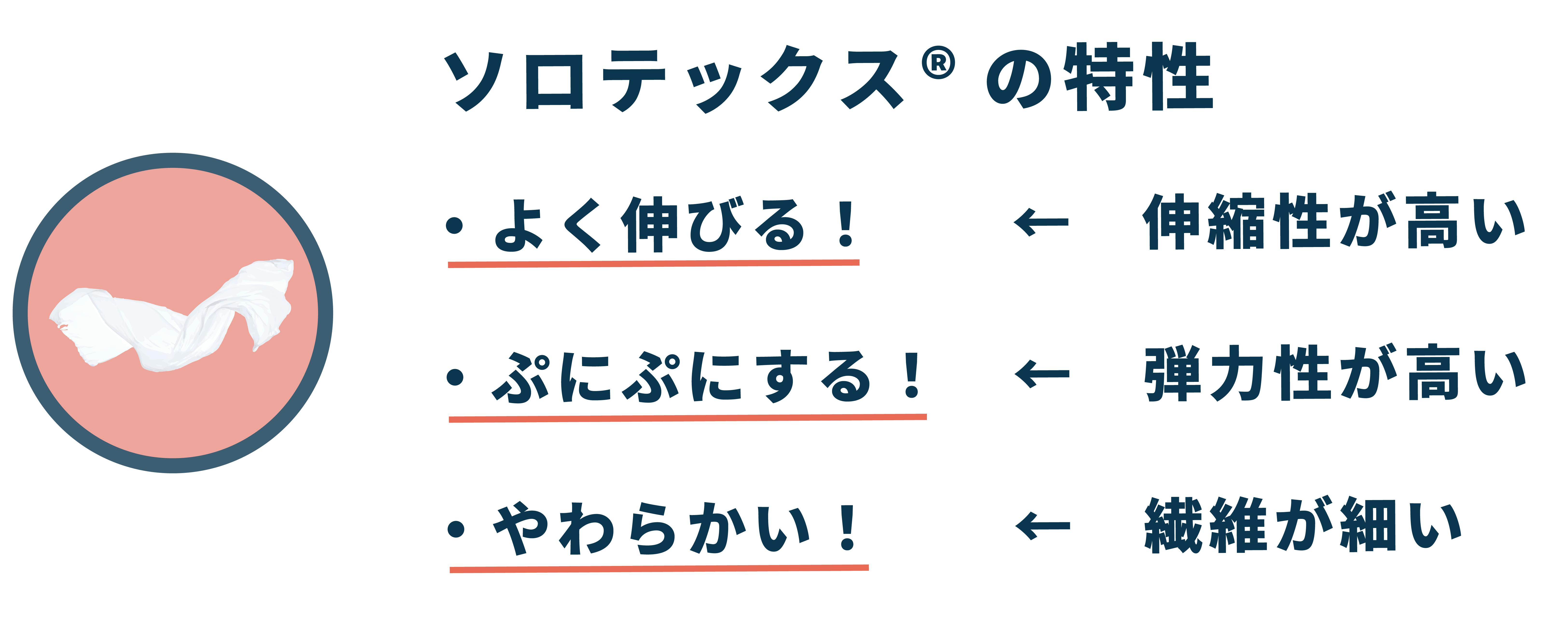 ストレッチ性とクッション性があるソロテックスはスーツやスポーツウェアにも使われるような素材です。よく伸び柔らかく支えてくれるので、毎日履く靴下にぴったりです!