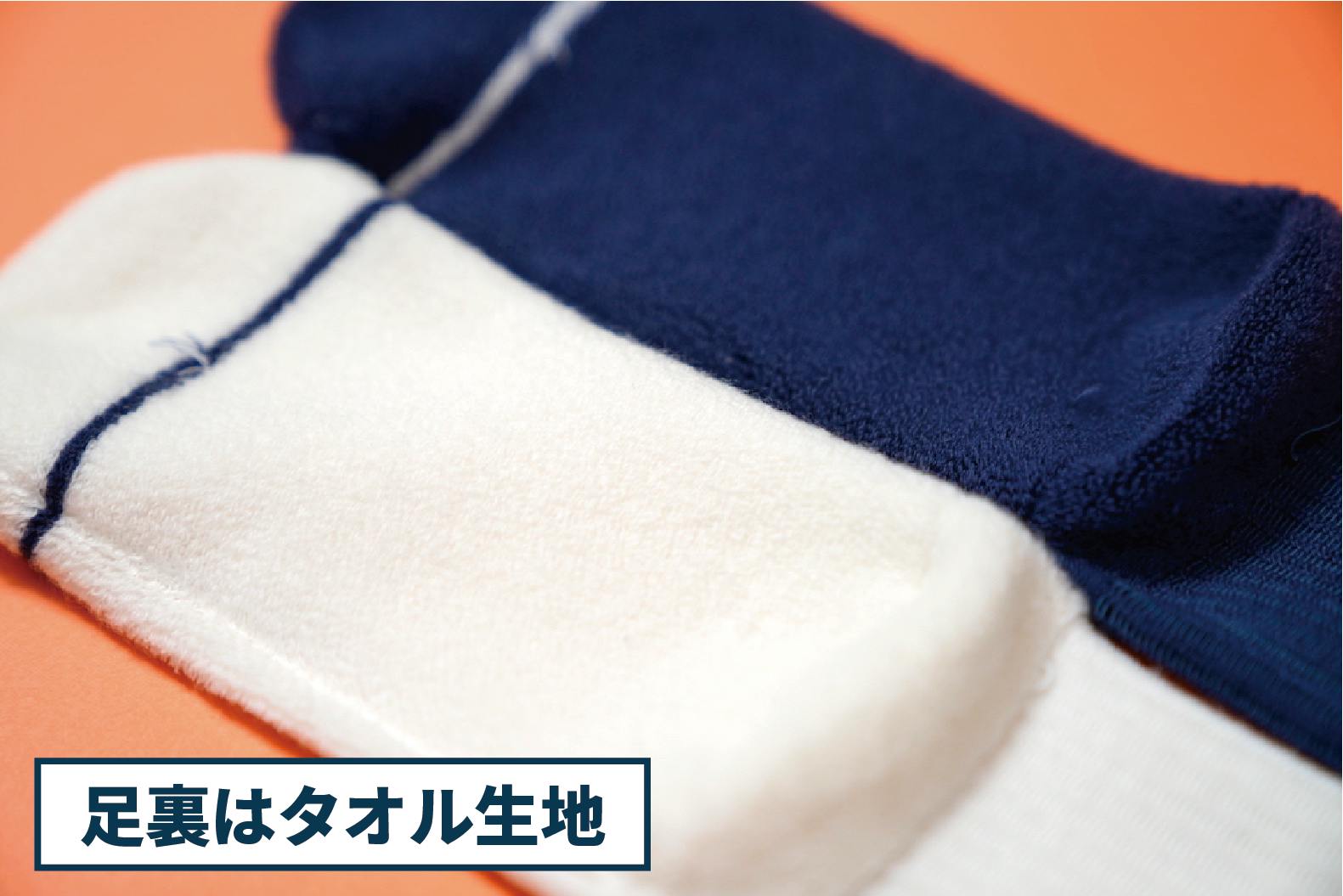 タオル地とソロテックスの相乗効果で靴下のクッション性は抜群です!