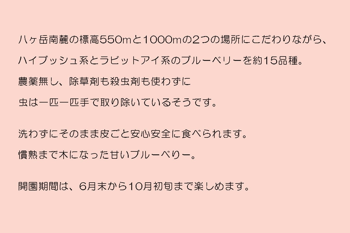 そして標高550mと1000m付近で育てた完熟ブルーベリーを提供させて頂きます。