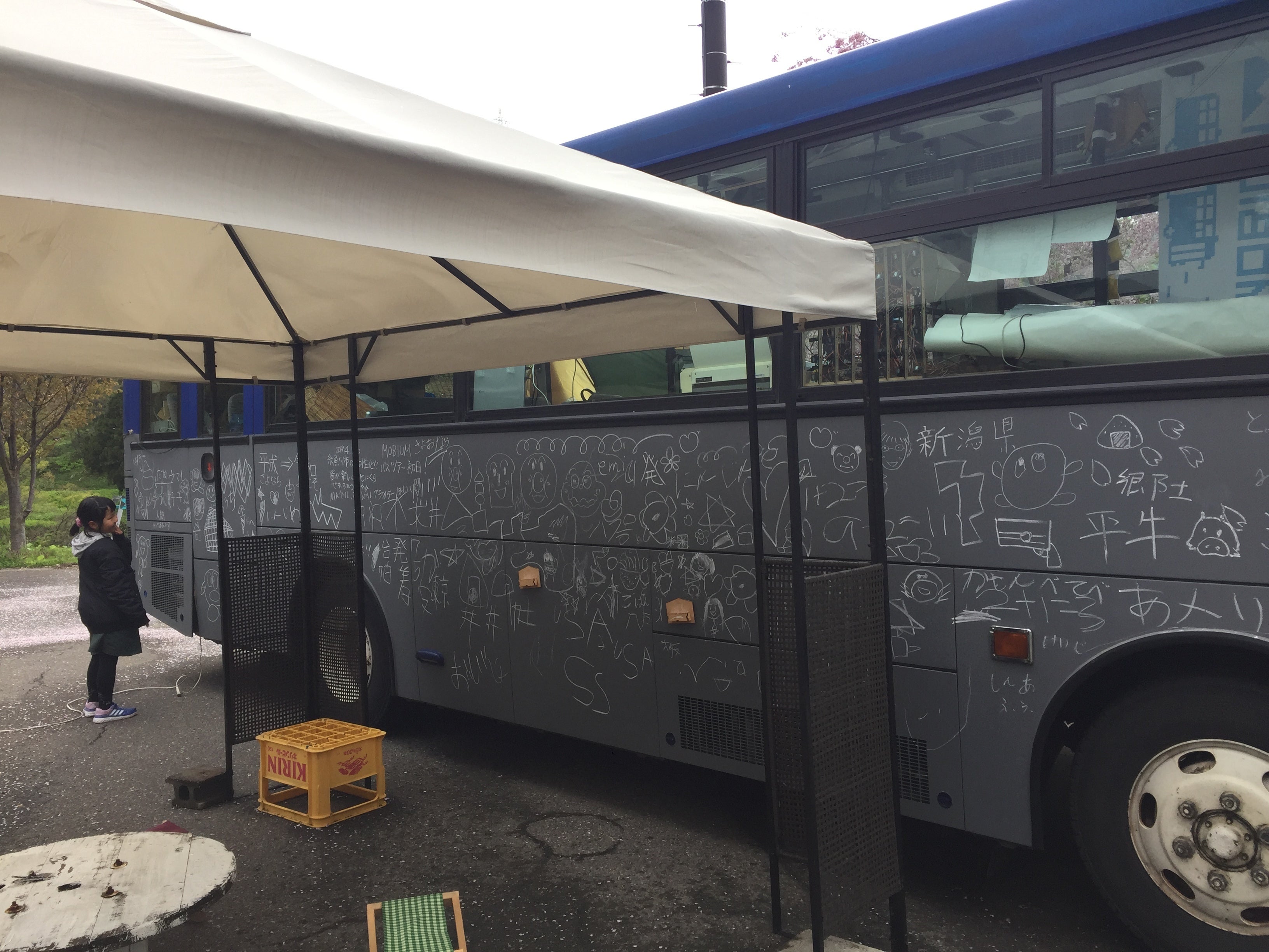 あいにくの雨でしたが宿泊客や地元の方々などがバスに落書きをしたりバス内の作品を鑑賞して楽しんでいただきました。