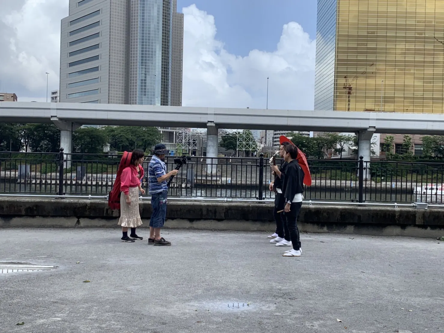 野外での撮影につき、台風が接近している中、途中土砂降りにも見舞われましたが