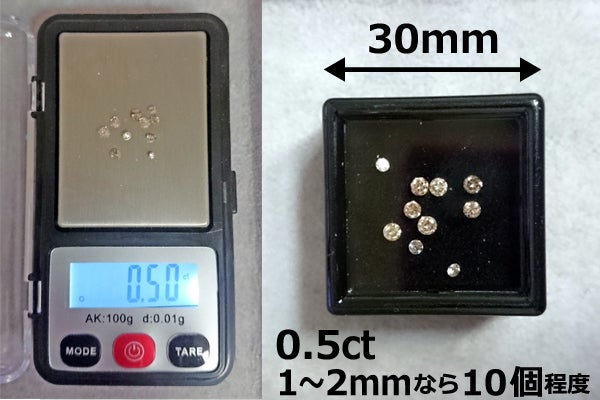 ※小さなダイヤモンドSSサイズ(約1mm~2mm)を10個 合計 約0.5ct 分をお届けします。