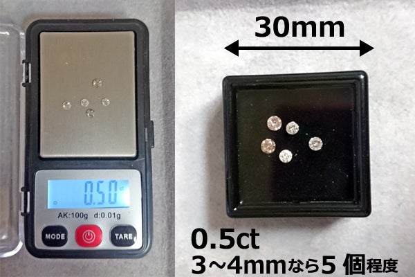 ※小さなダイヤモンドSサイズ(約3mm~4mm)を5個 合計 約0.5ct 分をお届けします。