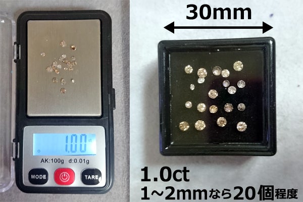 ※小さなダイヤモンドSSサイズ(約1mm~2mm)を20個 合計 約1.0ct 分をお届けします。
