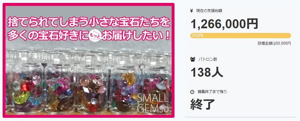 2019年3月に実施いたしました「SMALL GEMs」の第2弾プロジェクトでは、目標の2500%ものご支援をいただきました。