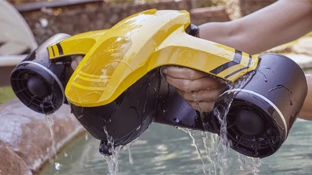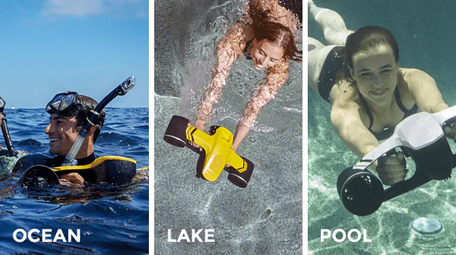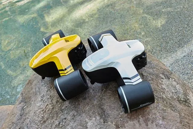 SEAFLYER(シーフライヤー)は、「水中スポーツをより簡単に」を目的とするRobosea社が、ドローンテクノロジーを応用し開発した誰でも簡単に楽しめる、画期的なポータブル水中スクーターです。最大水深45Mまで耐えられ、最高時速6.5kmで航行可能。亀と一緒にシュノーケリングしたり、イルカと一緒にスキューバしたり、もちろんプールで友人と楽しむだけでもOK。今までになかったマリンスポーツ体験を実現します。