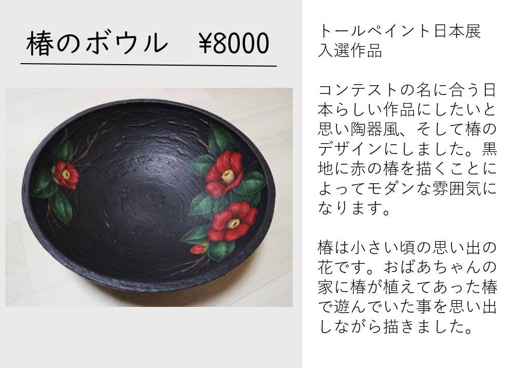 トールペイントとは、生活で使う物に絵を施したり、家に飾る絵を描く、いわば「暮らしを彩るアート」です。トールペイントが日本に入ってから約35年。初めは欧米のデザインやテクニックを真似するものが主でしたが、今では日本人の感性で、日本人らしいデザインが多く出されるようになりました。私が得意とする和の作品を、カルーゼル・ドゥ・ルーヴルに出展して、海外の方に見てもらいたいと思います。 また、クラウドファンディングに挑戦することで、トールペイントをご存知ない方に、暮らしを彩る身近なアート“トールペイント”を知ってもらえたら嬉しいです。
