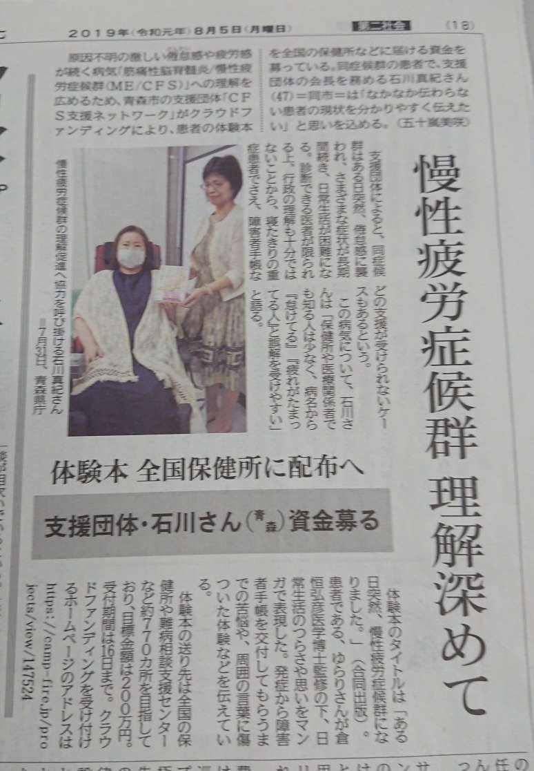 〜慢性疲労症候群 理解深めて 体験本 全国保健所に配布へ〜