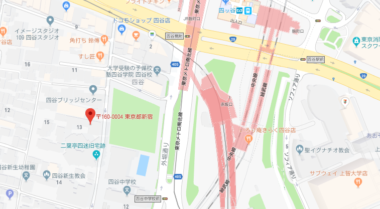↑コワーキングスペースは四ツ谷駅から徒歩2分の駅近にあります