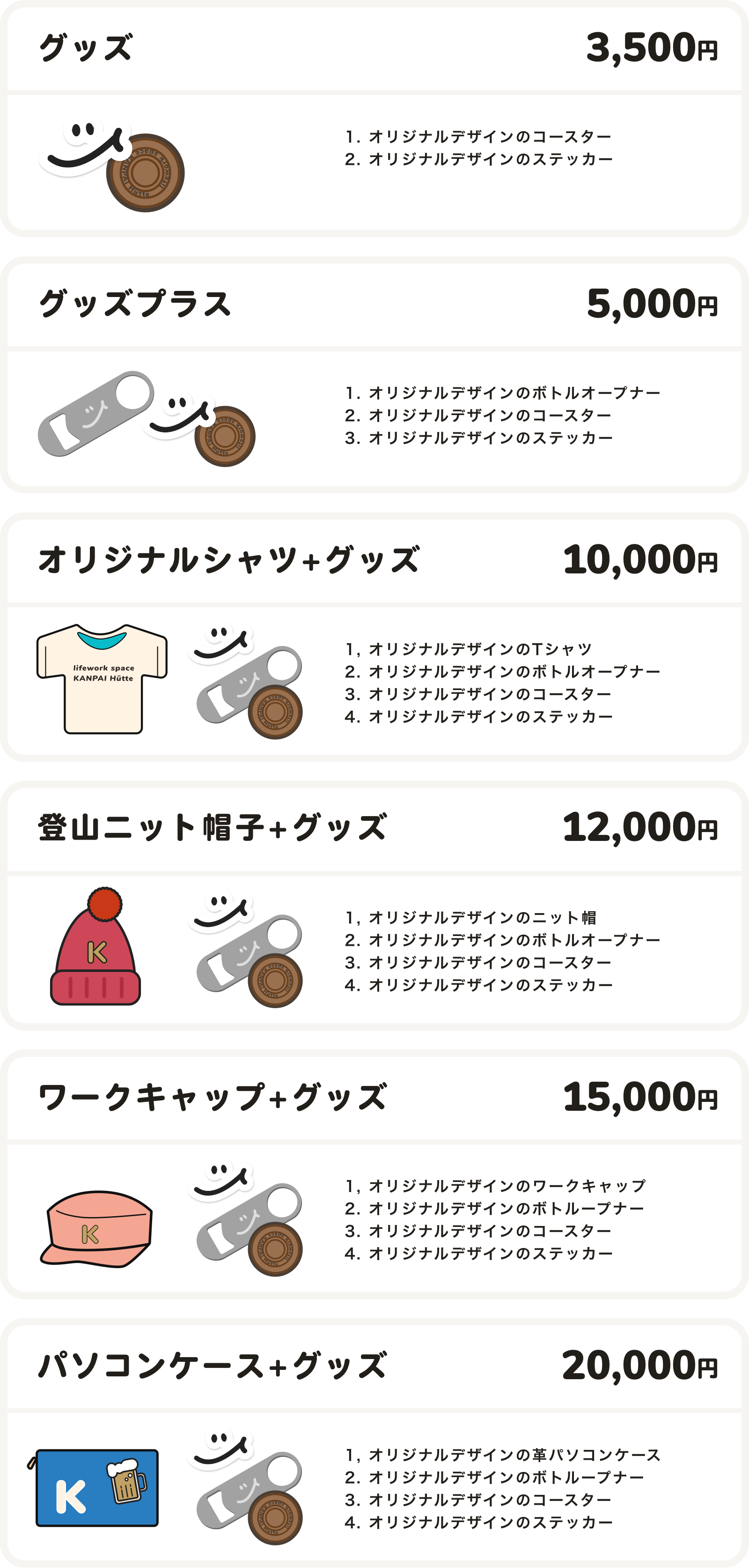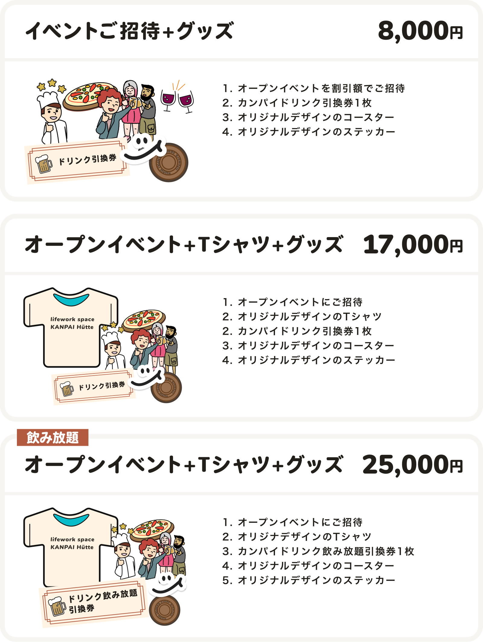 カンパイヒュッテのオープニングイベントに参加して、カンパイヒュッテの門出を一緒に盛り上げていっていただきたいと思いご用意しました。