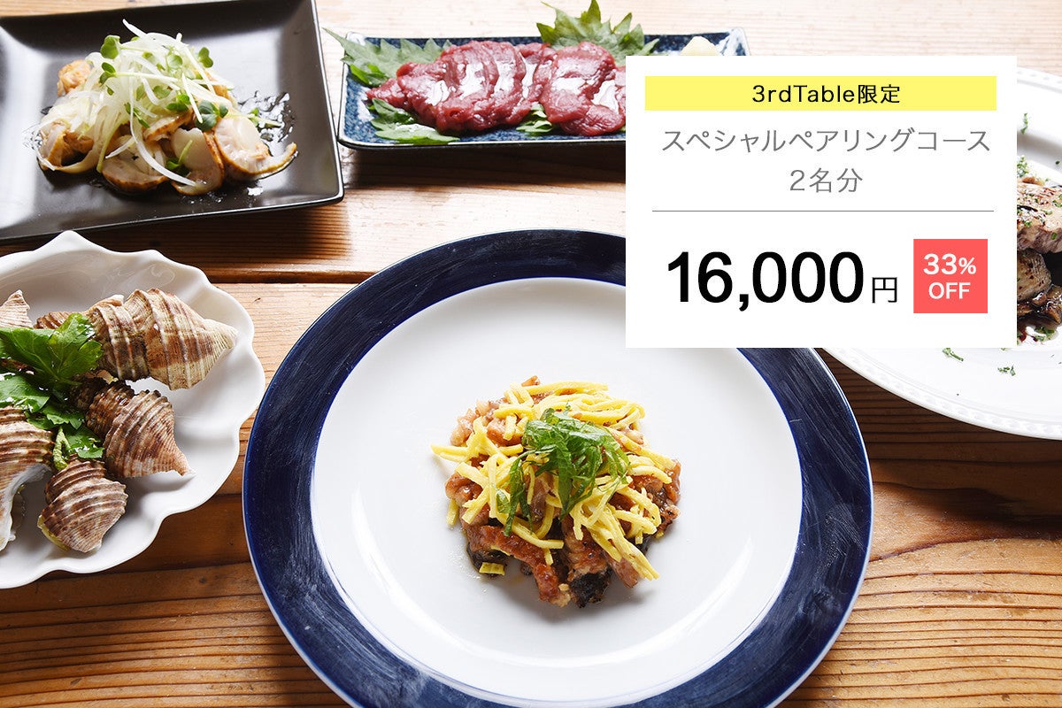 通常12,000円×2名の24,000円相当のセットを3rdTable限定で16,000円(33%OFF)で提供します。