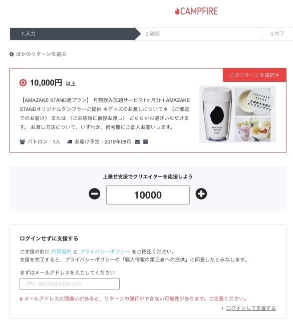 ①ページを開いて頂き、ご支援頂くリターンを選択