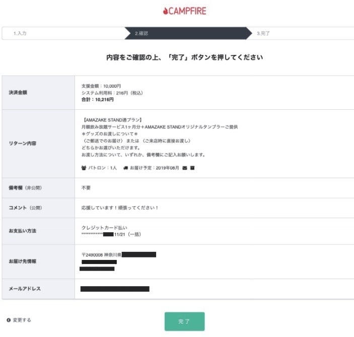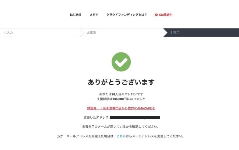 ⑧この画面になりましたら、ご支援完了です。