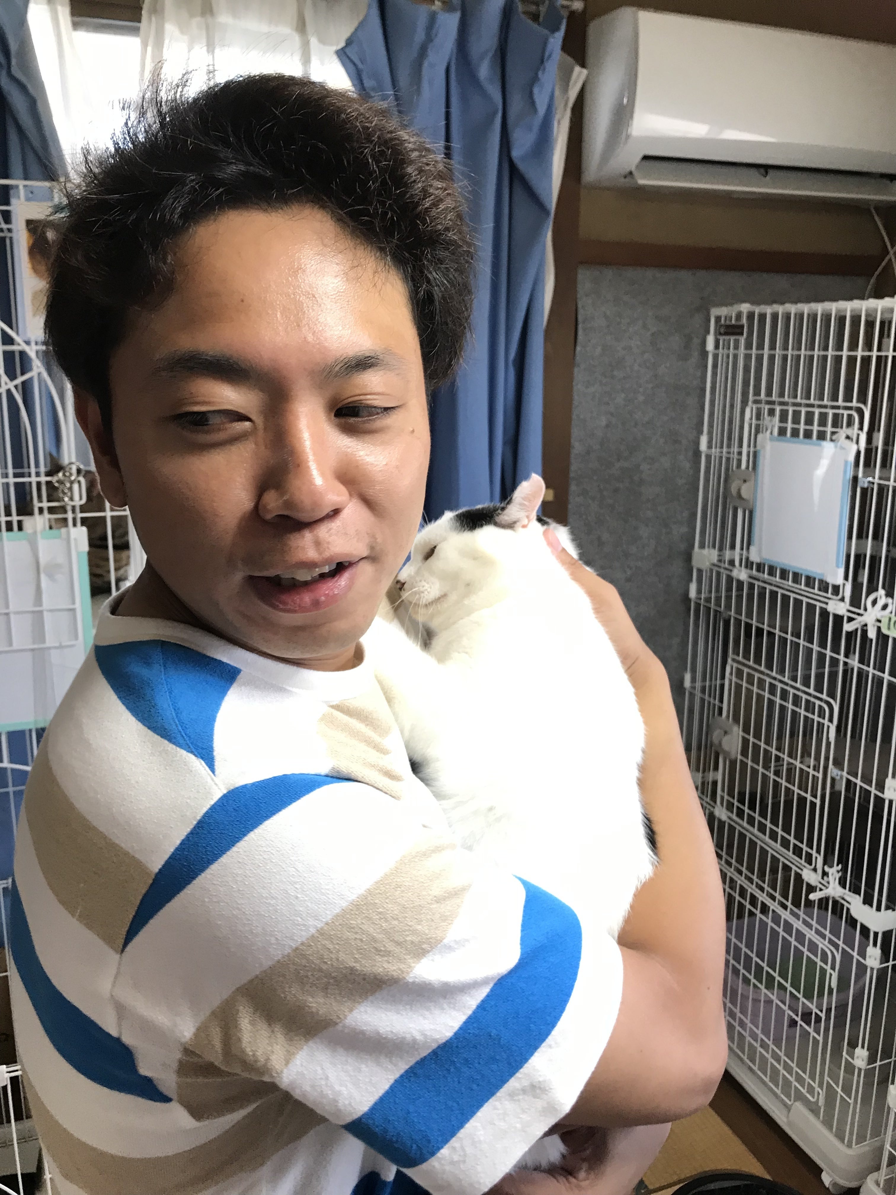 ニャンコの抱き方もとても安定感がありさすが、風神&雷神のパパさん!
