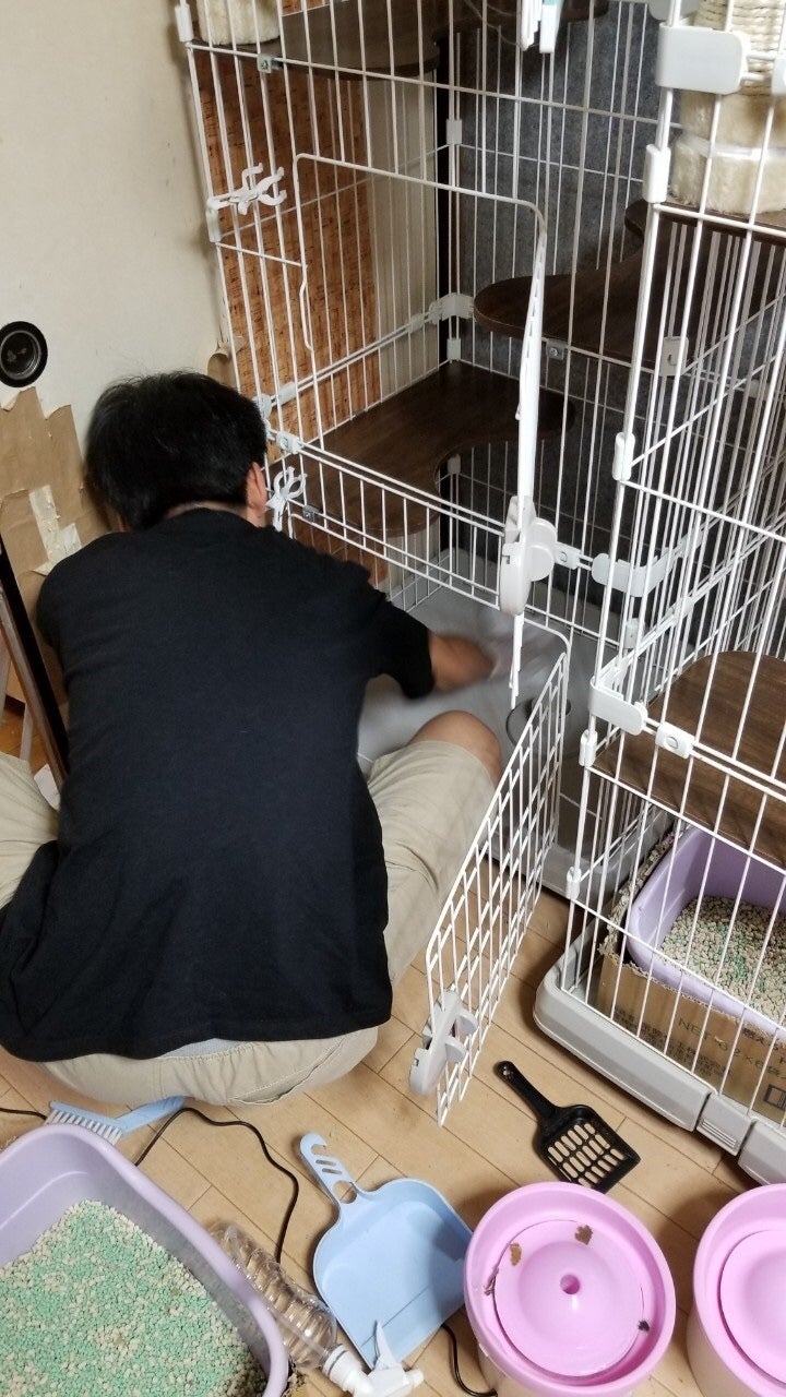 ニャンコ達、今日はボランティア様の息子さん達がお手伝い(^^)