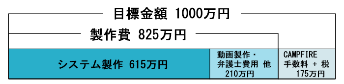 目標額は、製作費にCAMPFIRE手数料を加えて「1000万円」と設定いたしましたが、ご支援金はすべて、サービスを軌道に乗せるために大切に使わせていただきます。