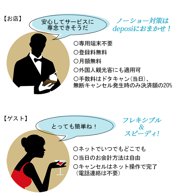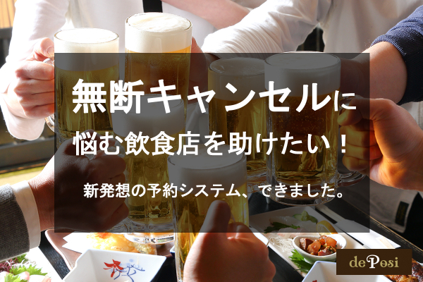このたび、飲食業界のNoShow(無断キャンセル)問題の解決を目指し、当プロジェクト「deposi(デポジ)」を立ち上げました。