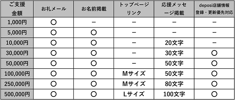 ※ご支援金額順の優先順位となりますが、同一店舗に複数の方からご支援があった場合、金額を合算いたします。