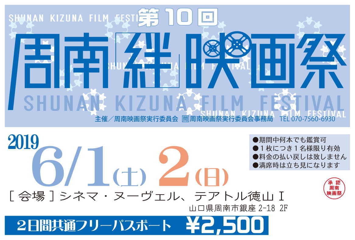 僕たち周南映画祭実行委員会は、そんな「映画」への想いを、山口県周南市から全国、世界に届けるとともに、この地域を元気にしたい、そしてその元気を全国や世界に発信したい、と周南「絆」映画祭を開催し、今年で10回目を迎えます。