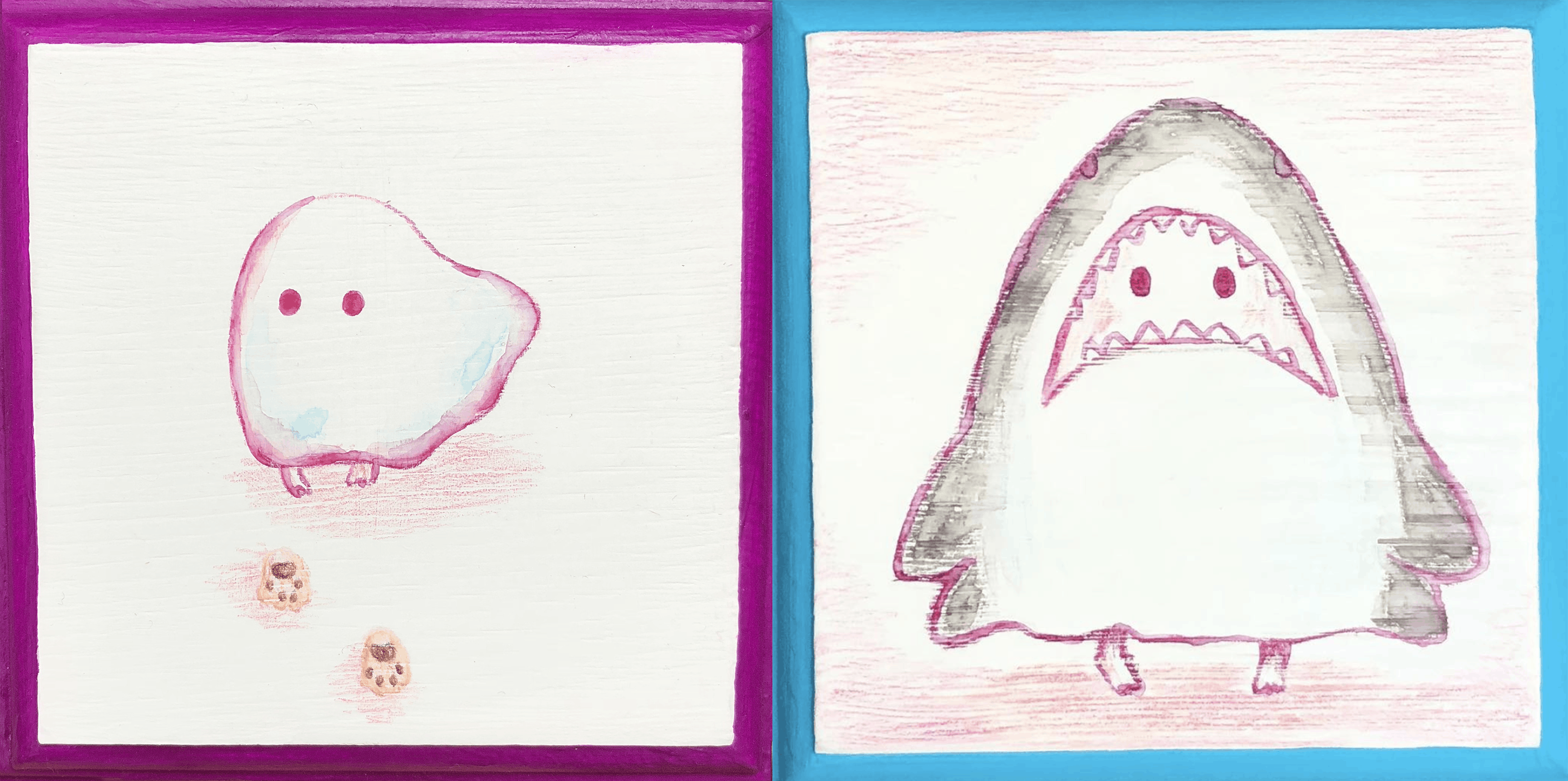 「おばけちゃんと気仙沼」というシリーズは、気仙沼出身の方が運営しているカフェで展示した際に描かせていただいたシリーズです。