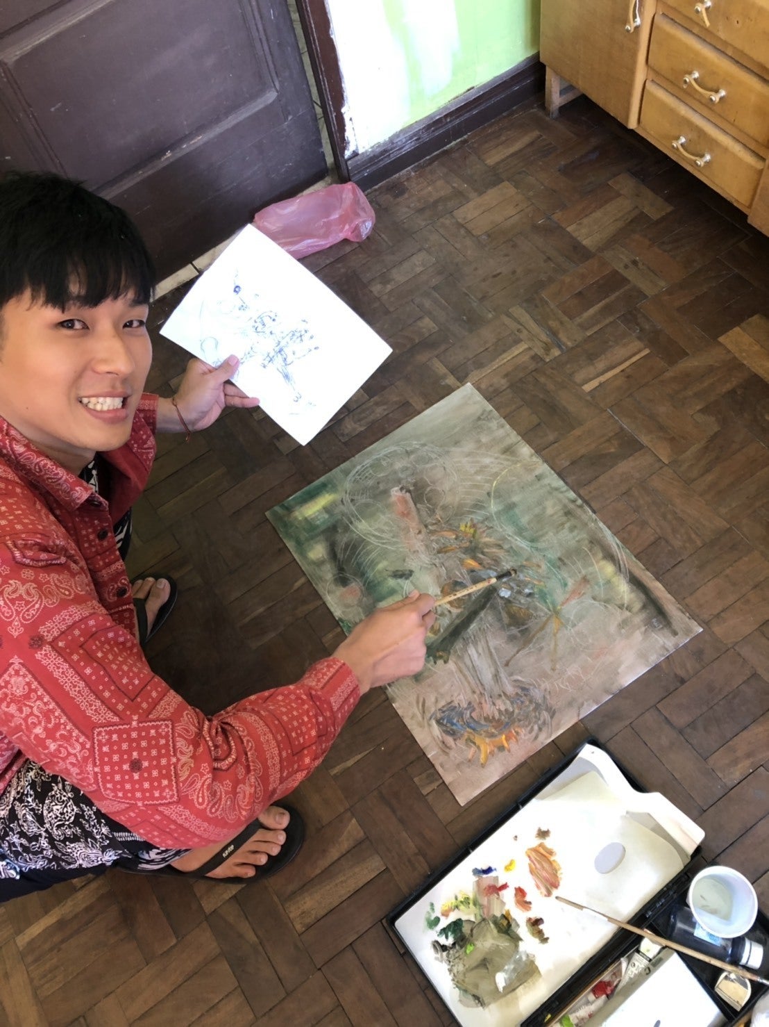 カンボジアの恩人の方から、この暖かいメッセージをいただいたこの日から僕の人生は一変しました。すぐにキャンバスを購入して、毎日、太陽光の差す内にキャンバスに向かい、夕日と共に仕事を終える、この様な旅行画家としての日々を今日までの3か月間続けてまいりました。
