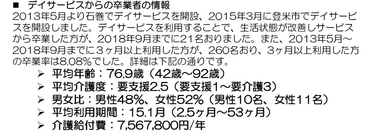 その結果、卒業”も”できるデイサービスの運営をしています。
