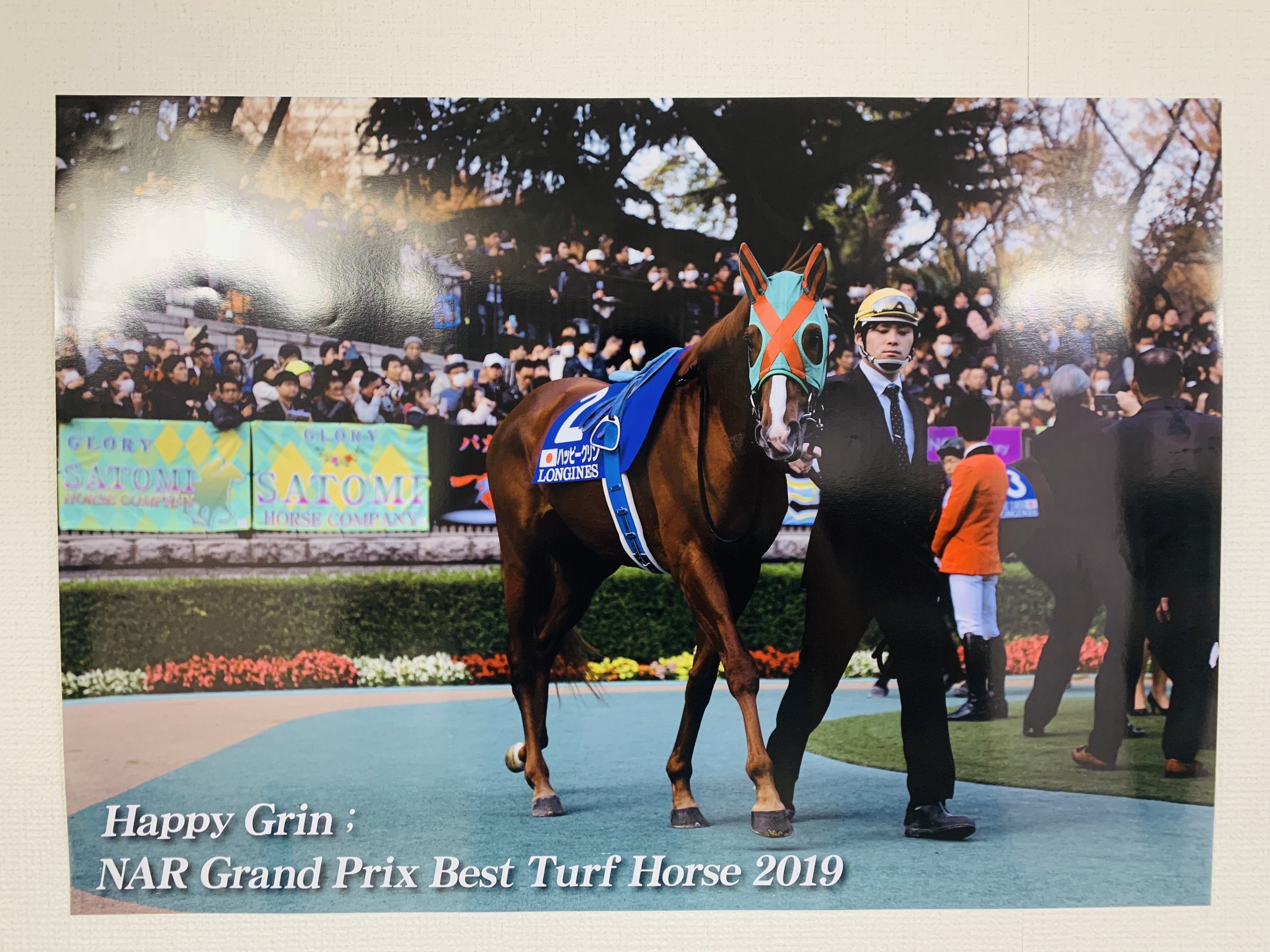 本日、新しいリターンとして「ハッピーグリン 服部騎手サイン入り A2サイズポスター」を追加させて頂きました。
