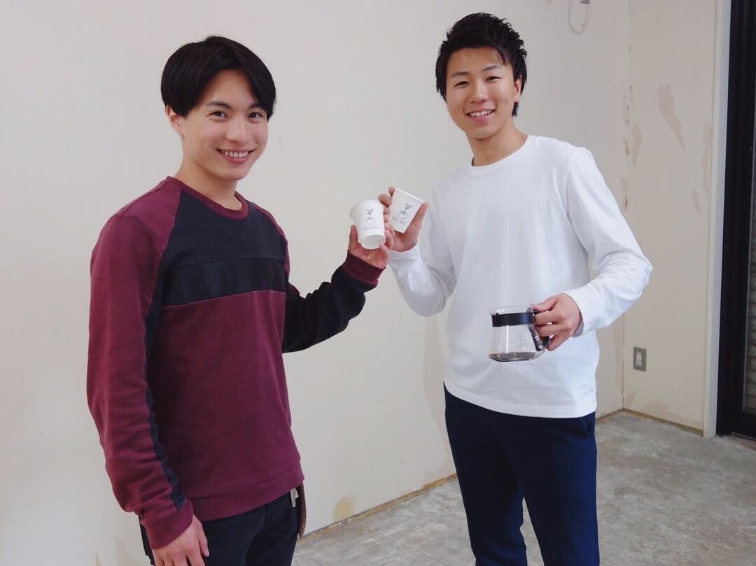 左側が創業を手伝ってくれてる山形くん。右に立っているのが私です。