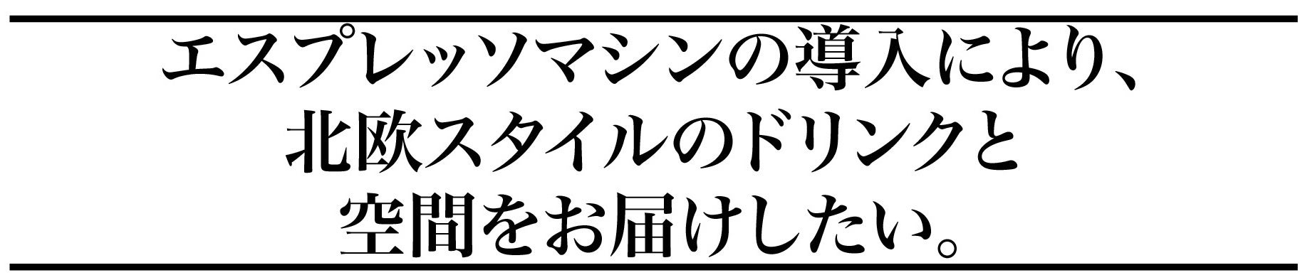 ドリンクは何度も足を運んで頂く楽しみを追求し、エスプレッソマシンの導入によるメニューのバリエーションを増やす。また、コーヒーを浅煎り焙煎で提供する事で苦過ぎず何度も飲める北欧スタイルを再現。